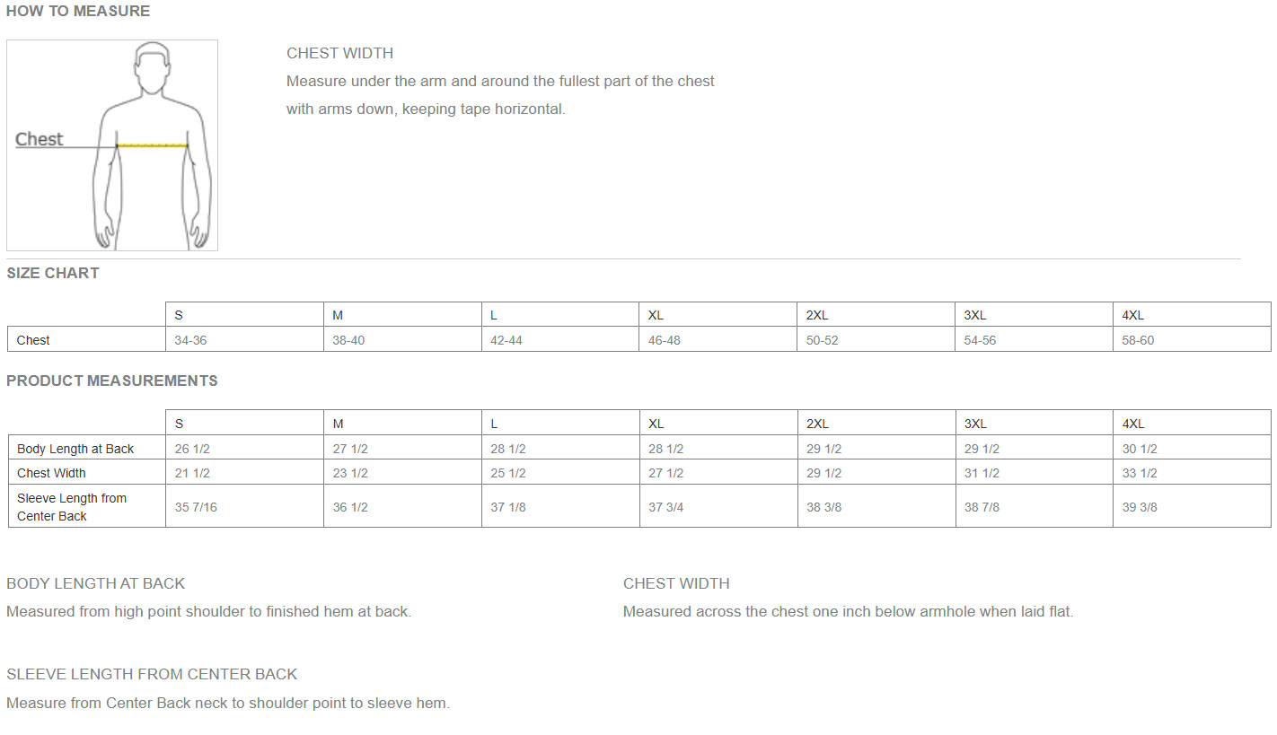 | PRODUCT SIZES | S-4XL Adult Men’s Sizing |