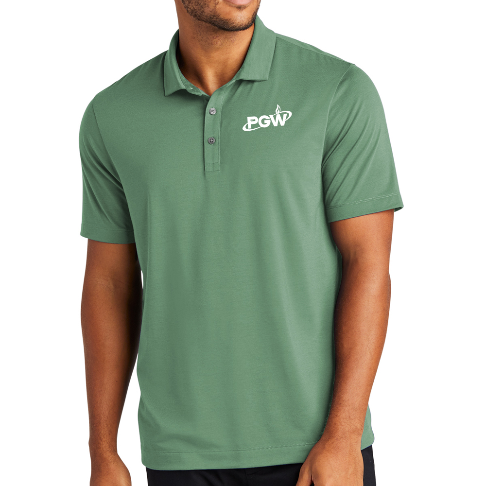 For a more style-forward polo, everyday pique knit is replaced with a soft jersey blend for a subtle drape and a smooth hand. Features moisture-wicking and self-turned cuffs and hems.